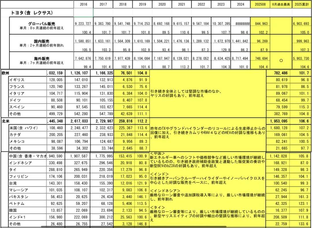 当丰田汽车公布2025年8月全球销量达84.5万辆,同比增长2.2%的成绩单时,表面数据似乎依然光鲜。